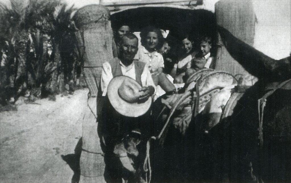 1- Las familias crevillentinas empezaban su estancia en el Pinet con un viaje en carro, cargado con las esteras con las cuales se construía la barraca, y con todas las cosas necesarias para pasar la temporada: colchones, menaje de cocina, etc.