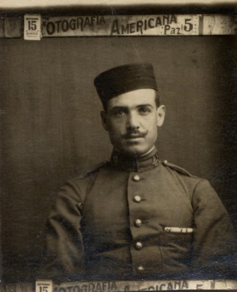 Foto oficial de reclutamiento para la guerra de Cuba hecha en Madrid, casa “La Fotografía Americana”. Se trata de un joven de apodo Balitxa.