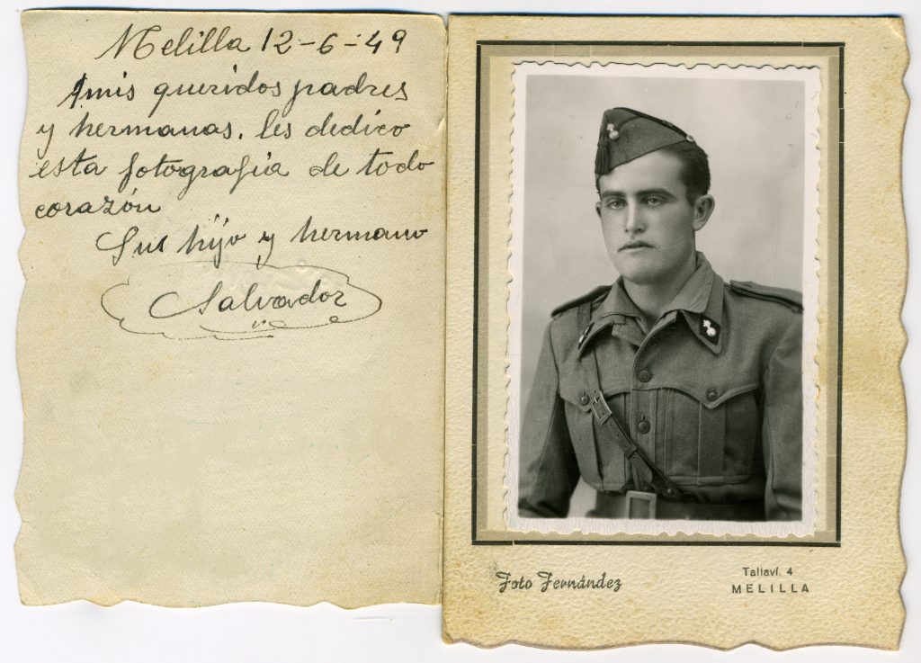 Otra foto enviada a casa desde la mili, en Melilla, el año 1949.