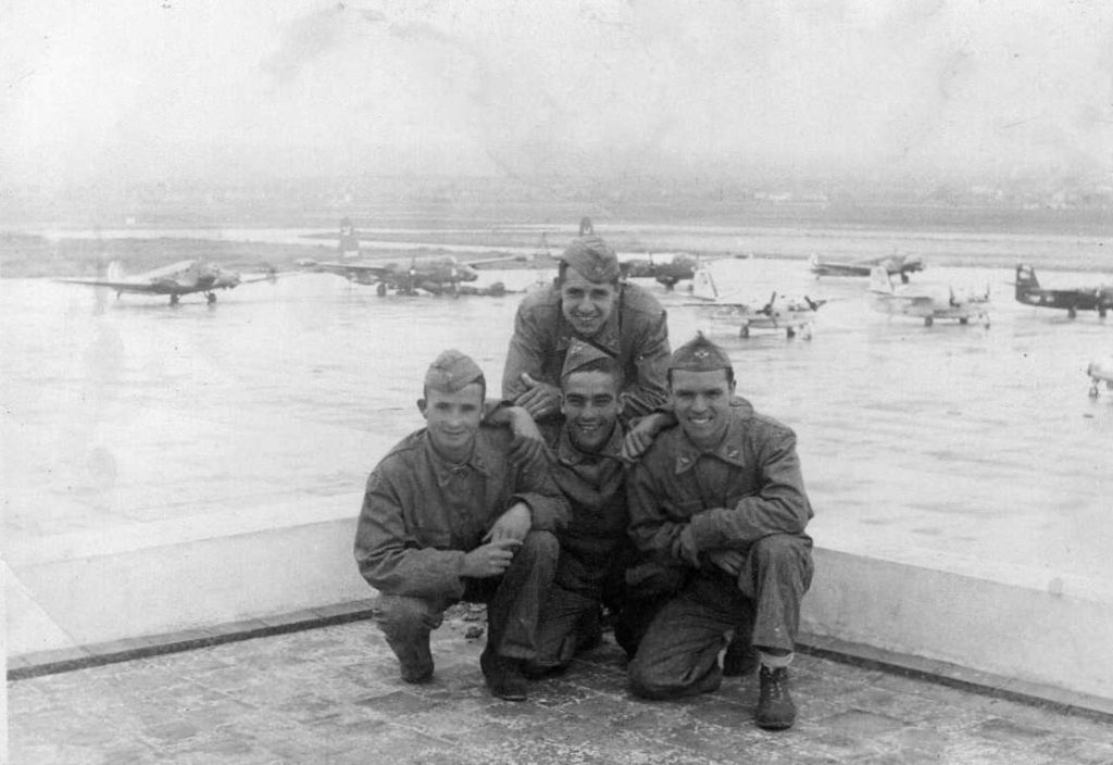 Soldados posando en un campo de aviación.