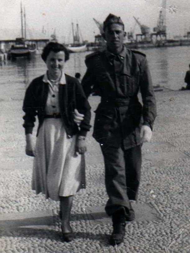 Soldado con su amada paseando por el Puerto.