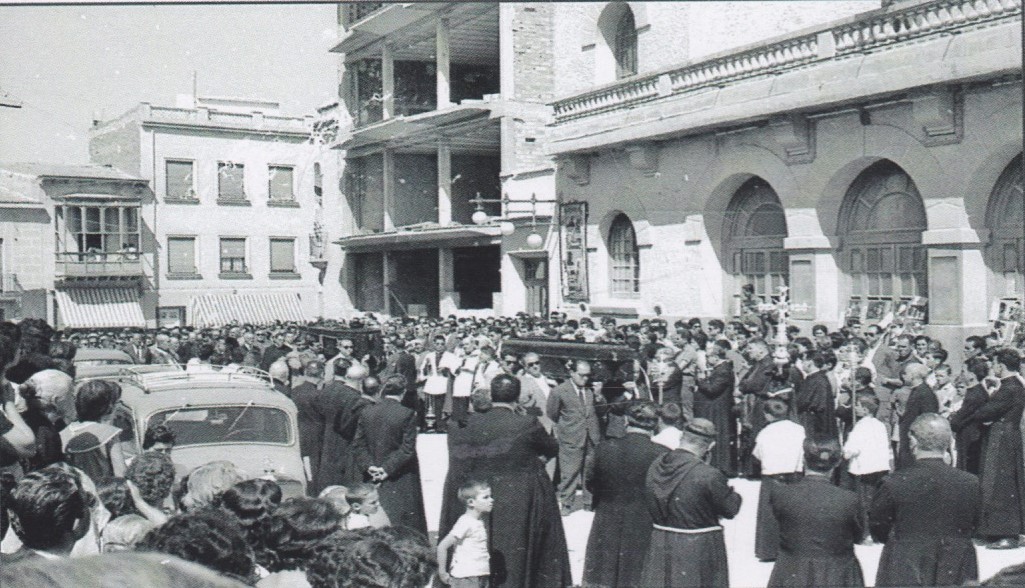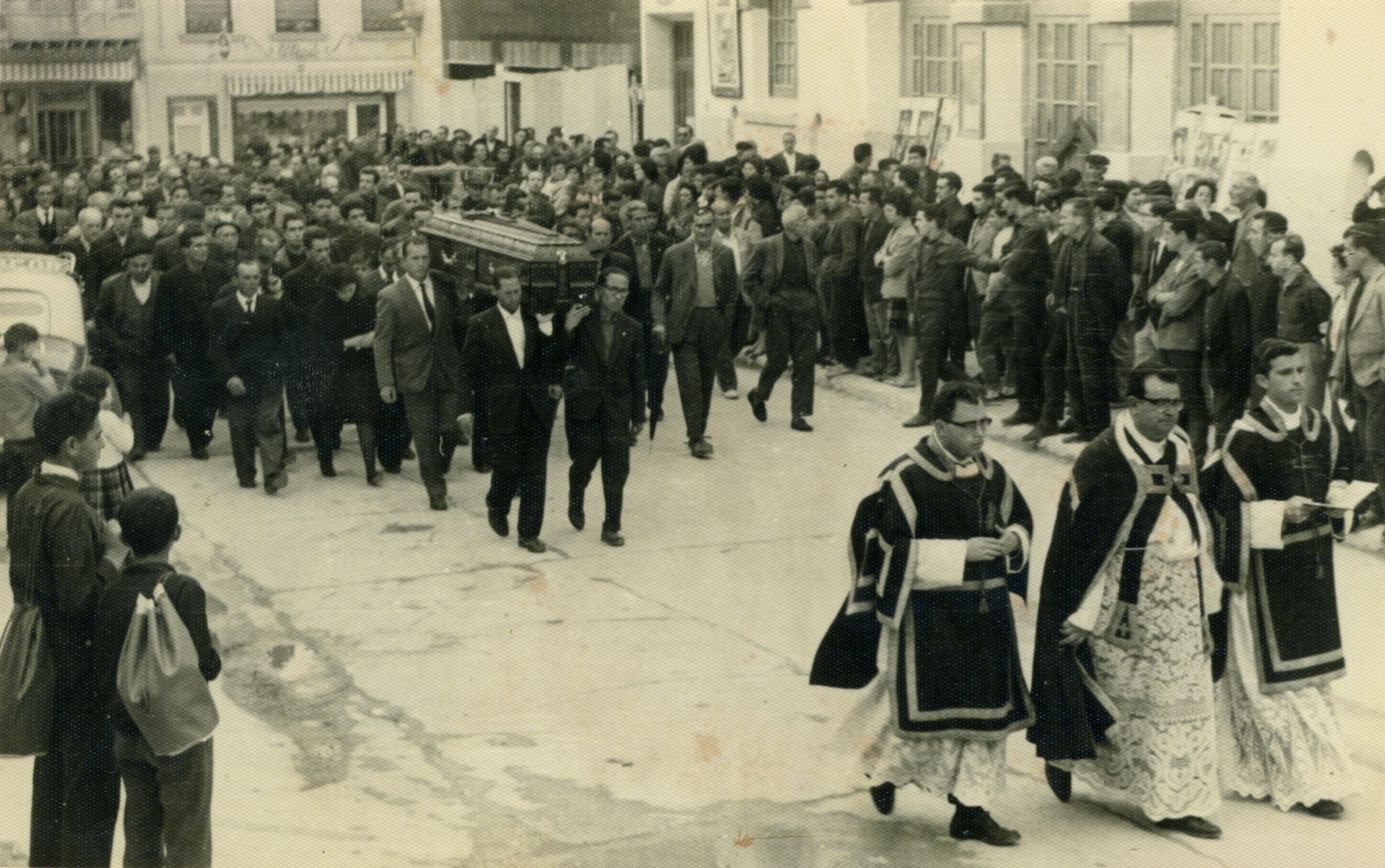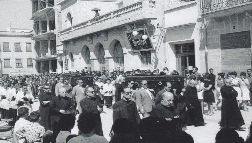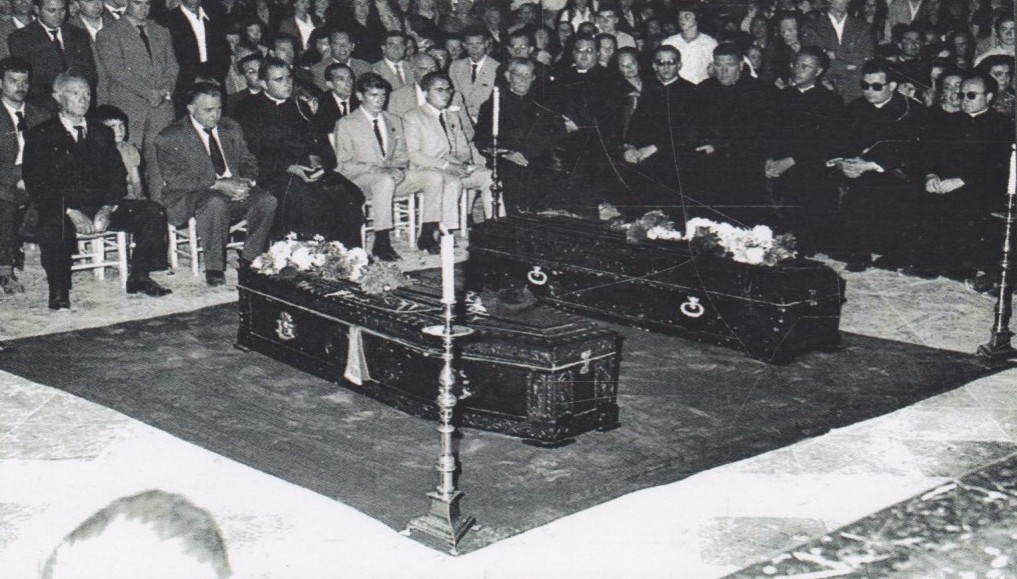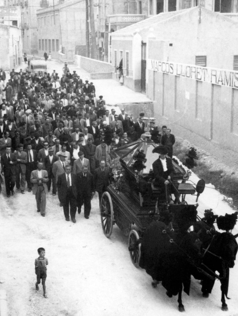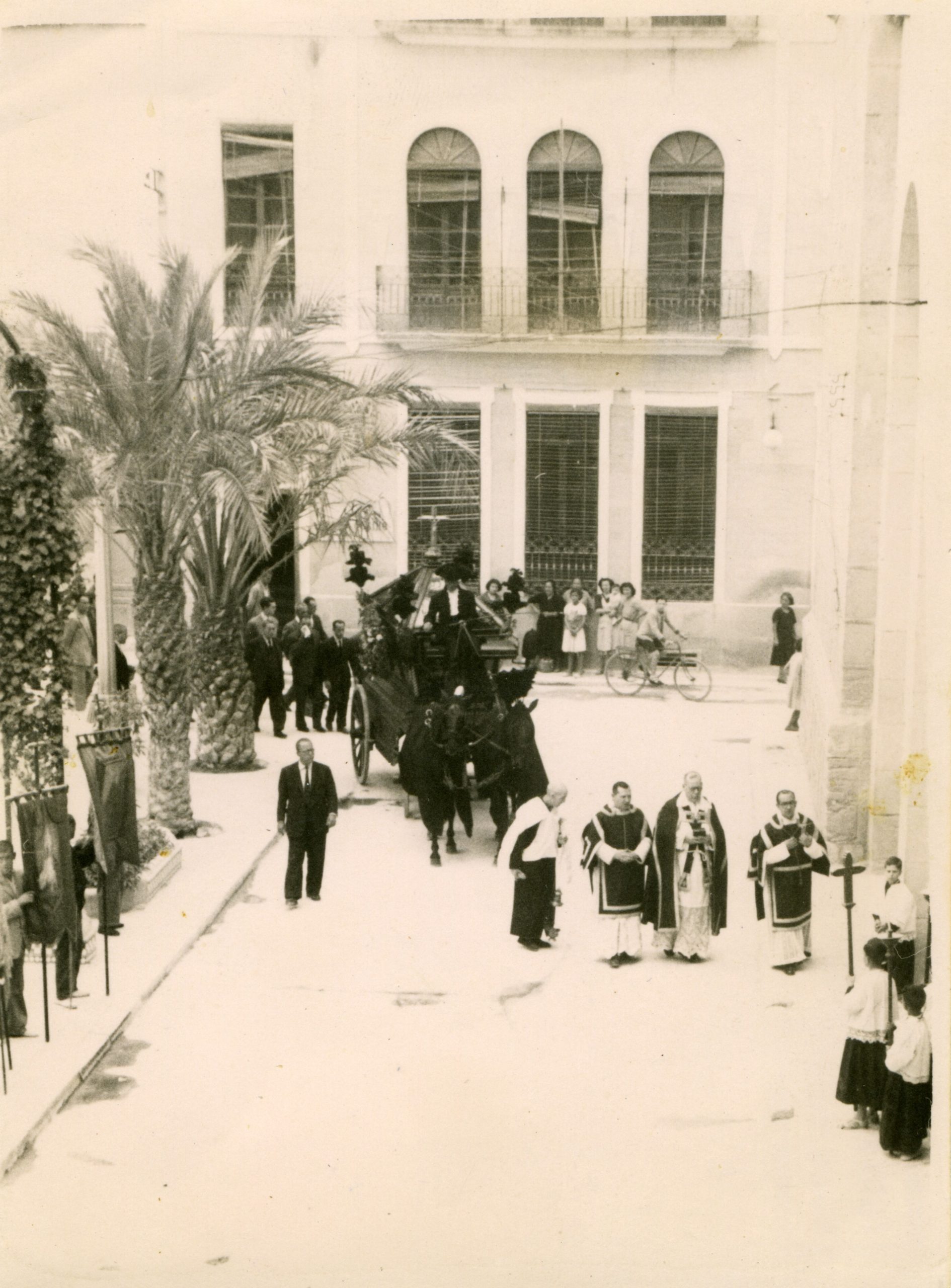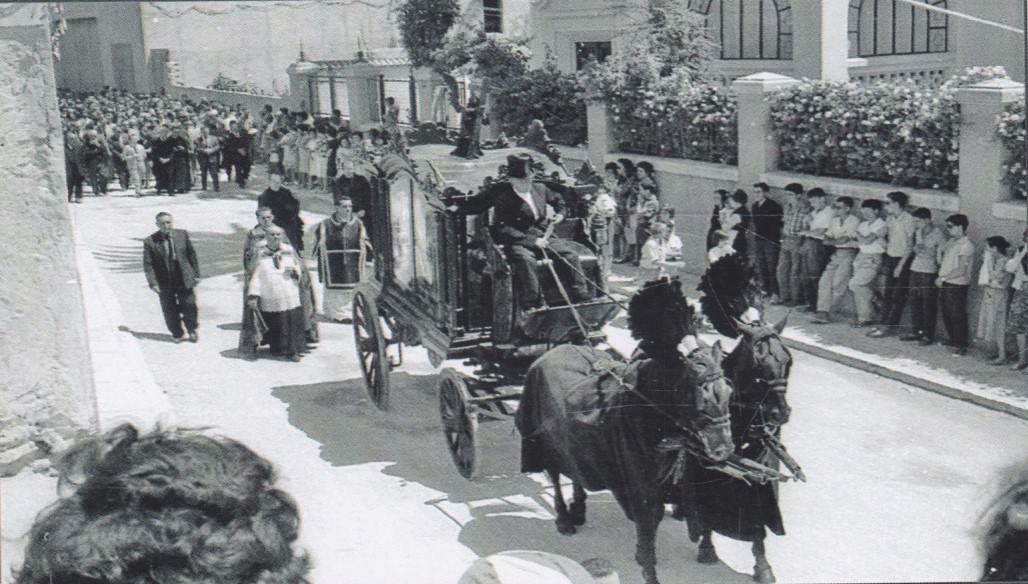 Entierro de D. Francisco Mas (Don Paco), cura párroco de Crevillent, i de su sobrina Remedios Mas. Don Paco y su sobrina murieron, en un fatal accidente, el año 1961.