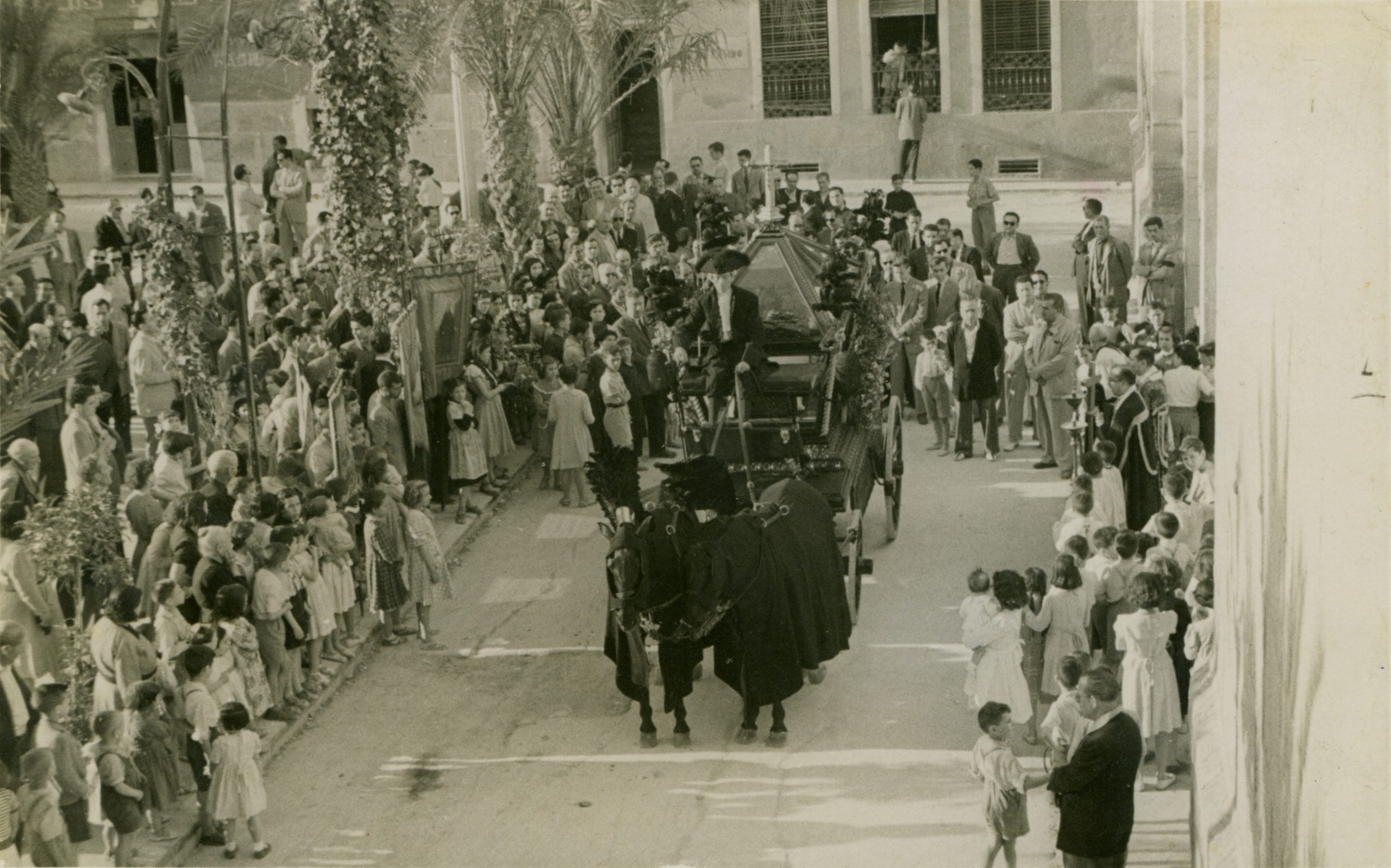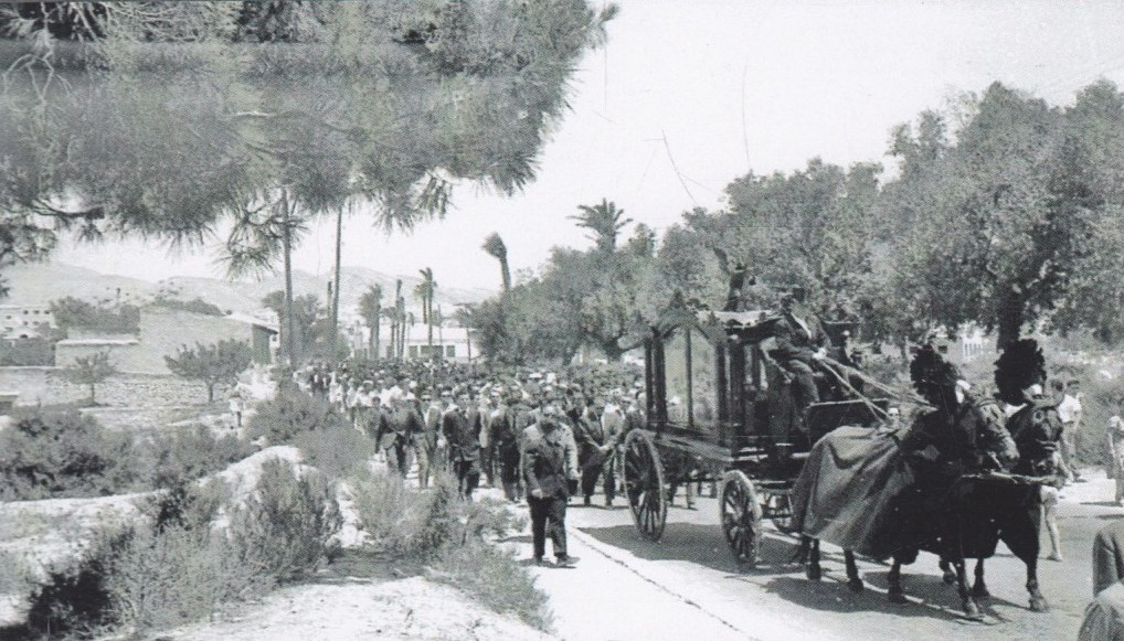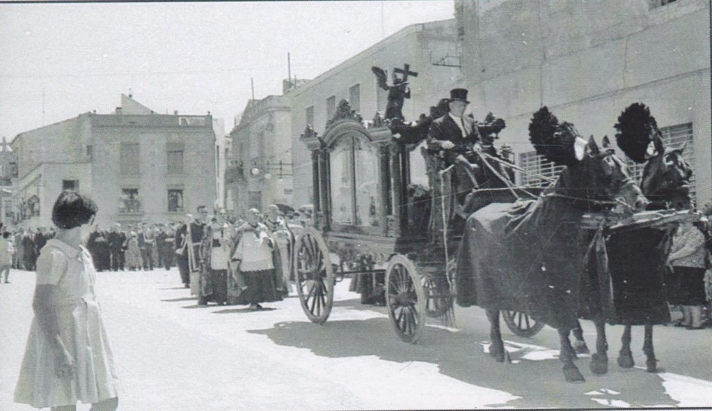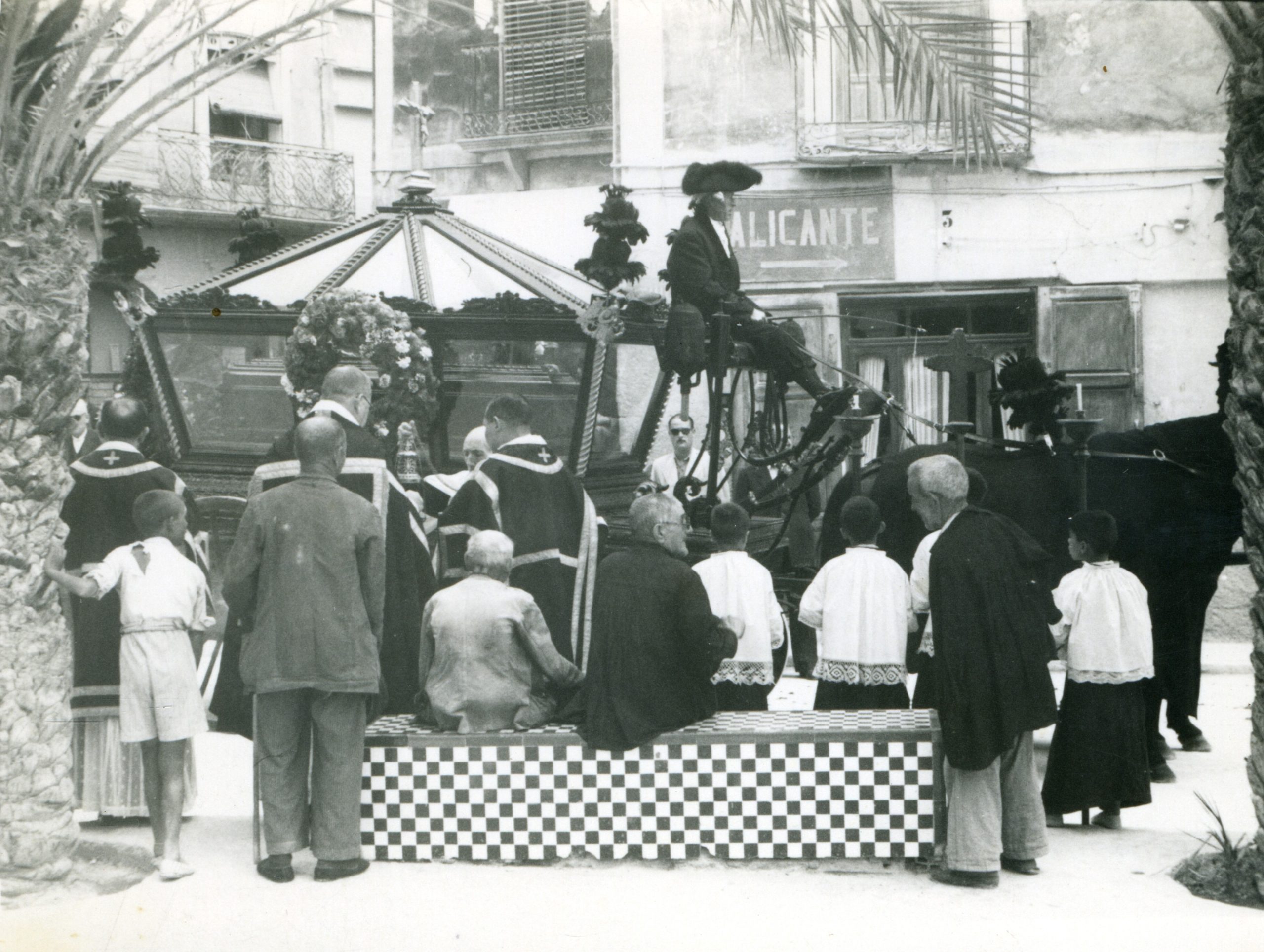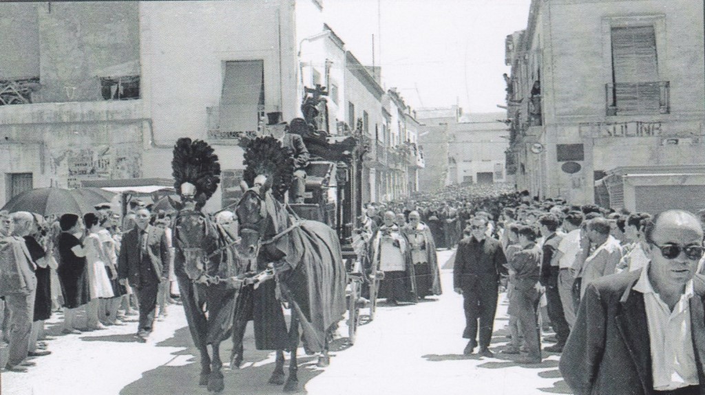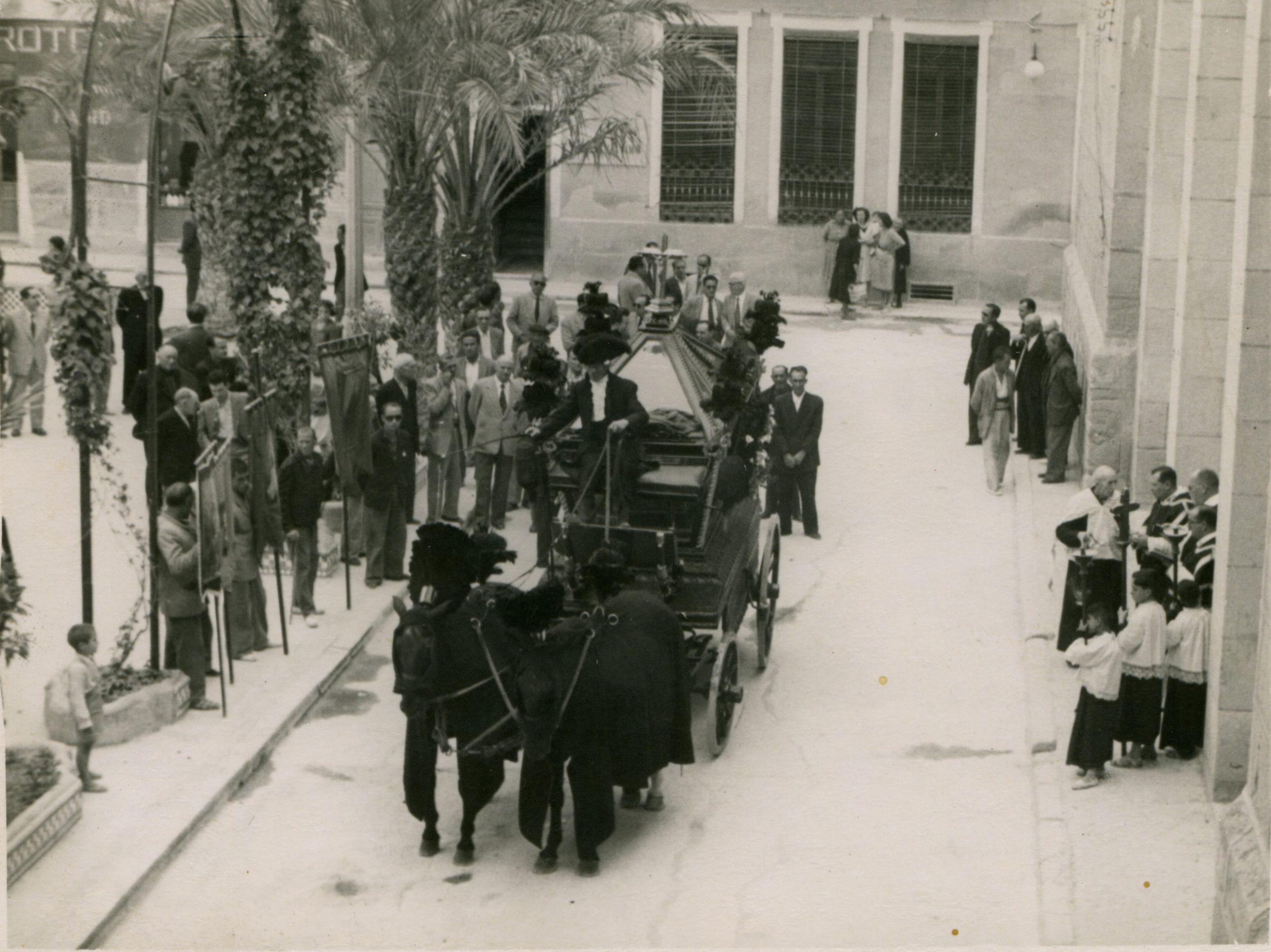 Entierro de D. Francisco Mas (Don Paco), cura párroco de Crevillent, i de su sobrina Remedios Mas. Don Paco y su sobrina murieron, en un fatal accidente, el año 1961.