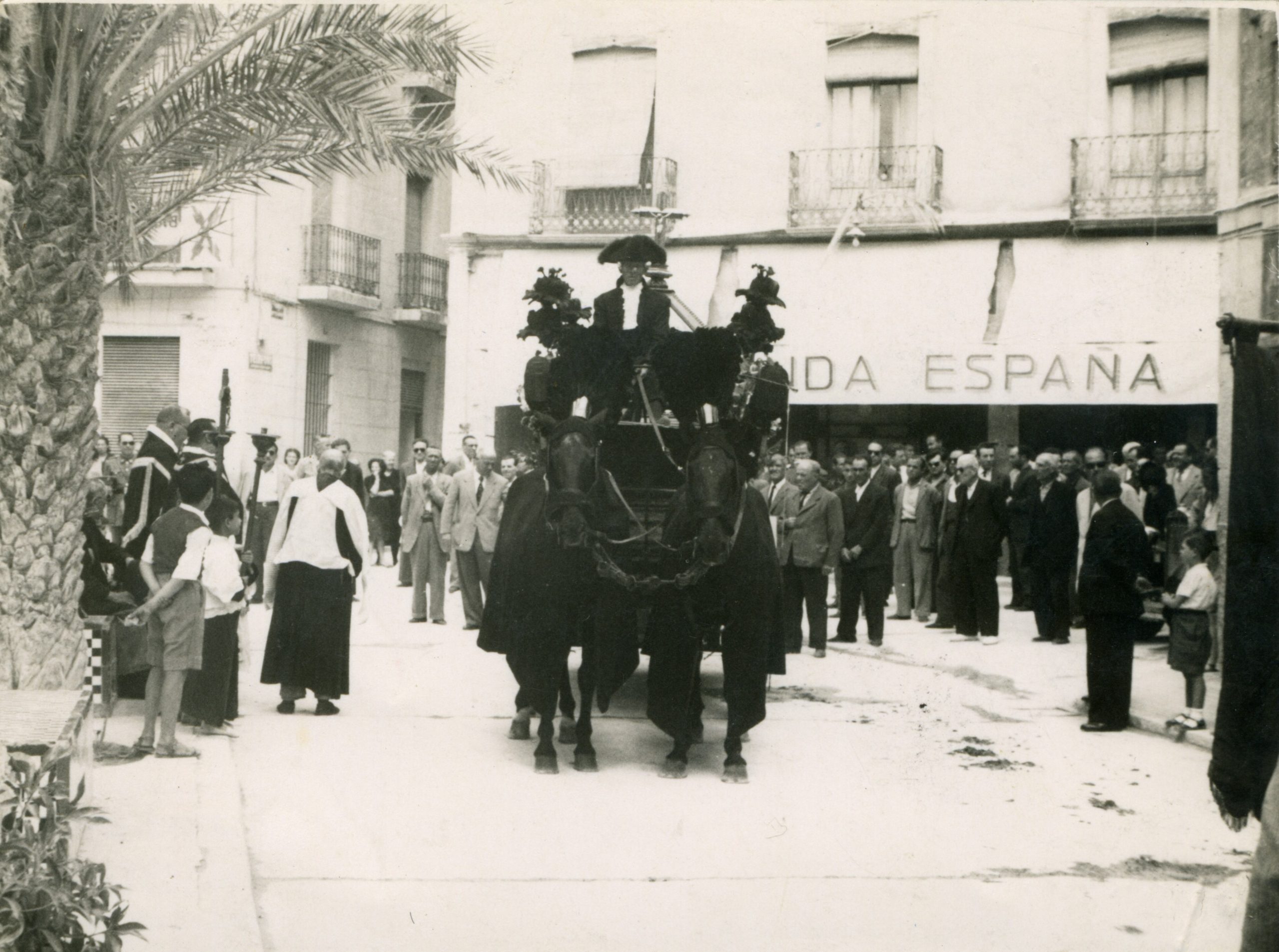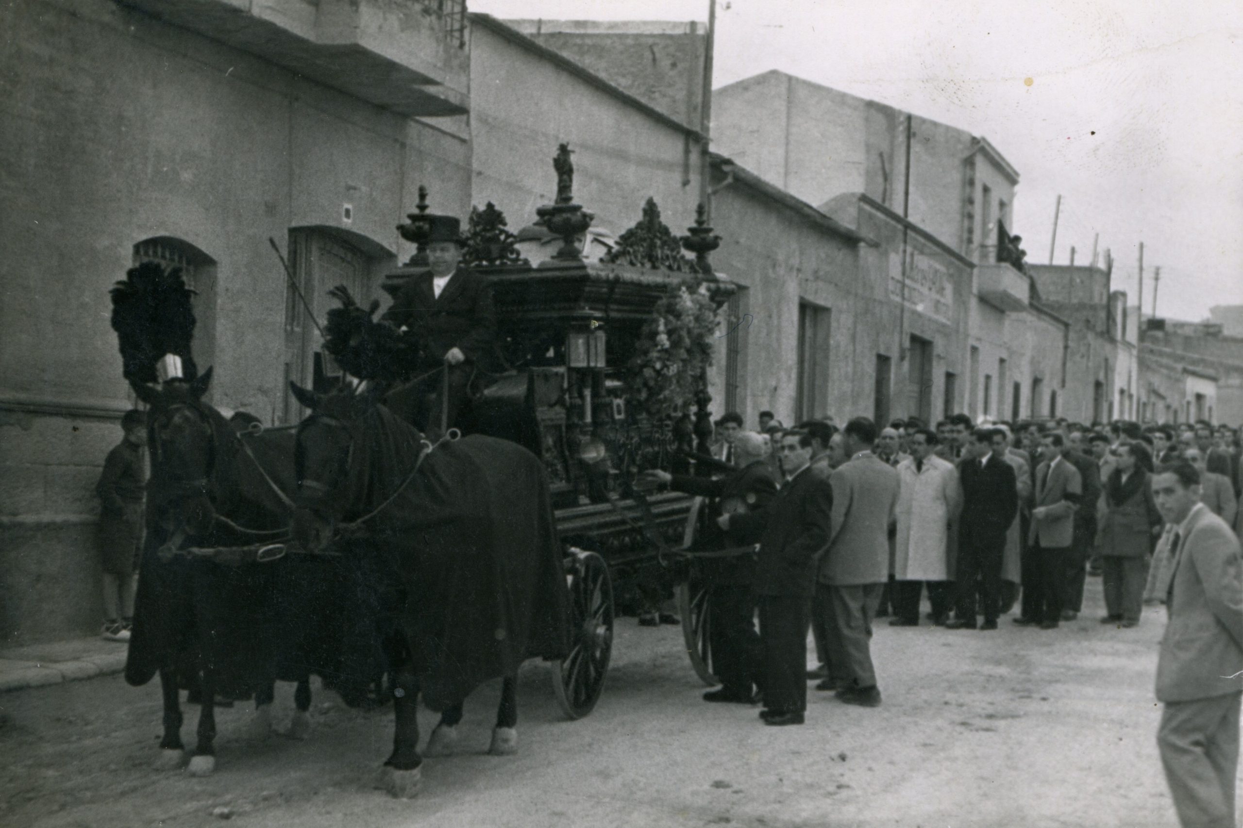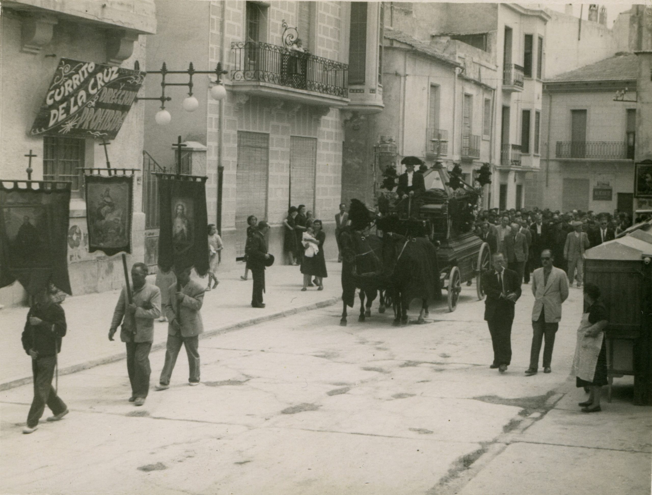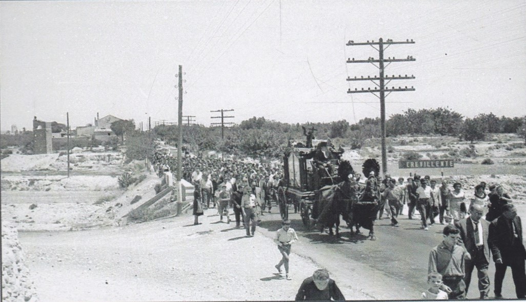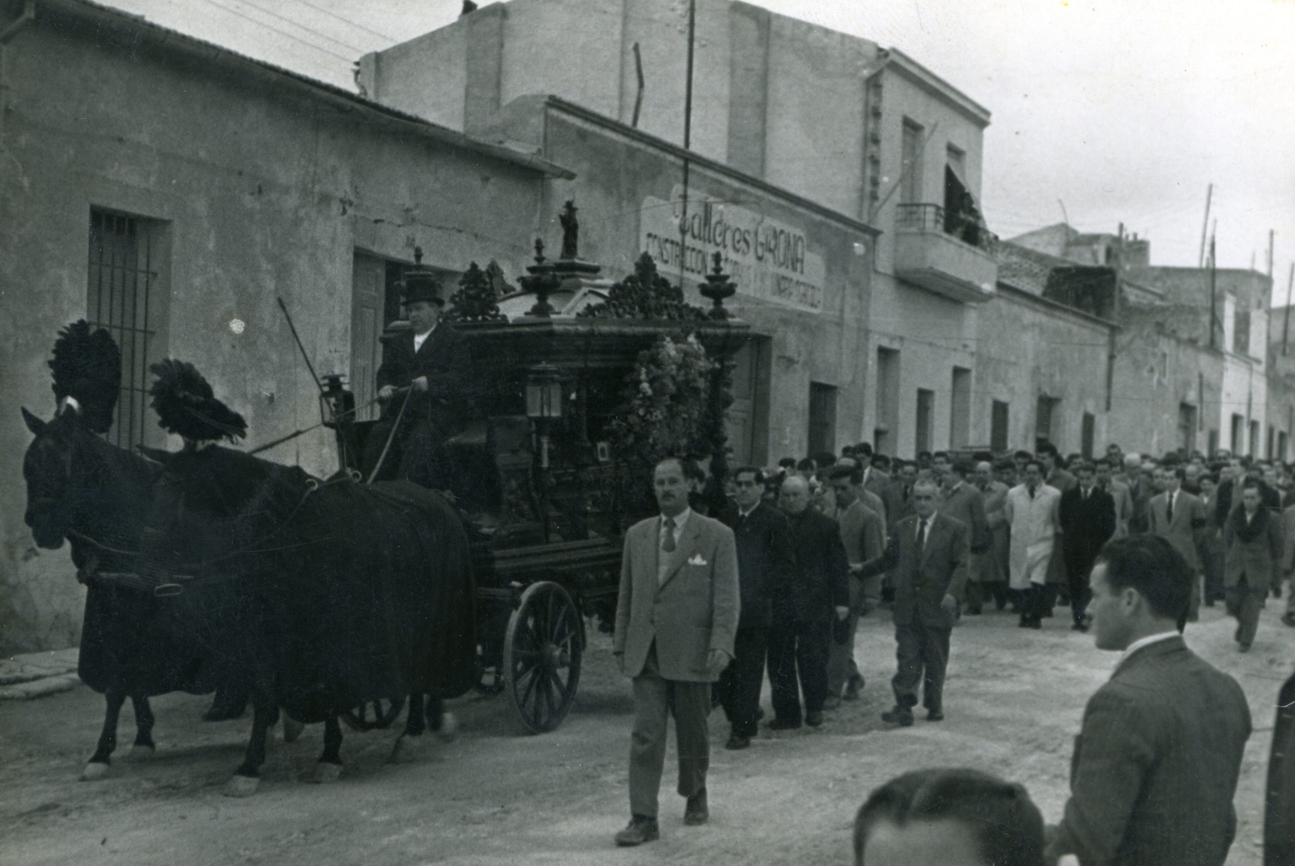 Entierro de D. Francisco Mas (Don Paco), cura párroco de Crevillent, i de su sobrina Remedios Mas. Don Paco y su sobrina murieron, en un fatal accidente, el año 1961.