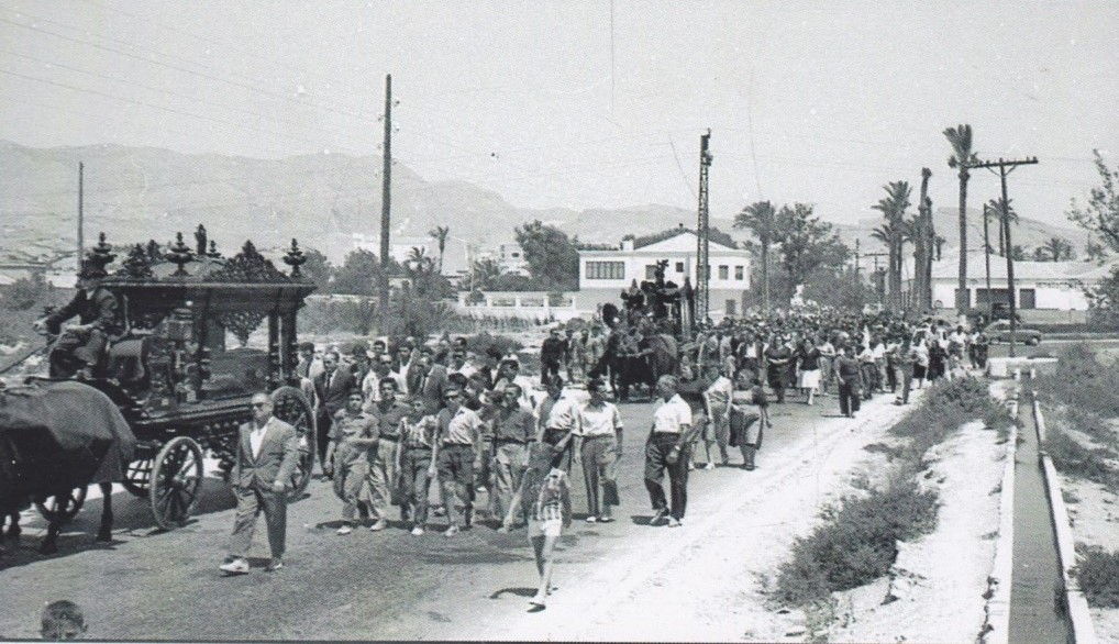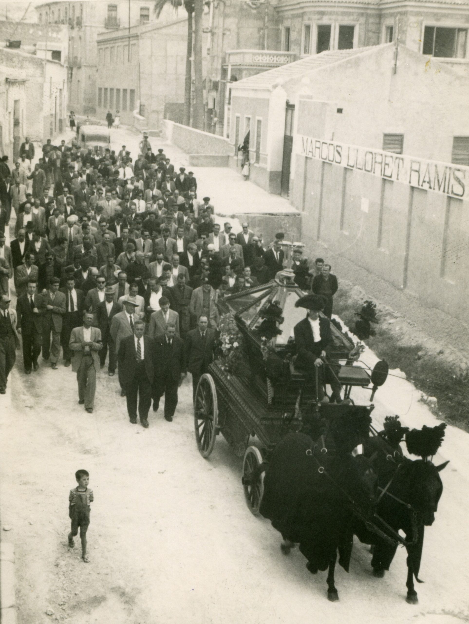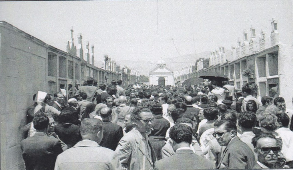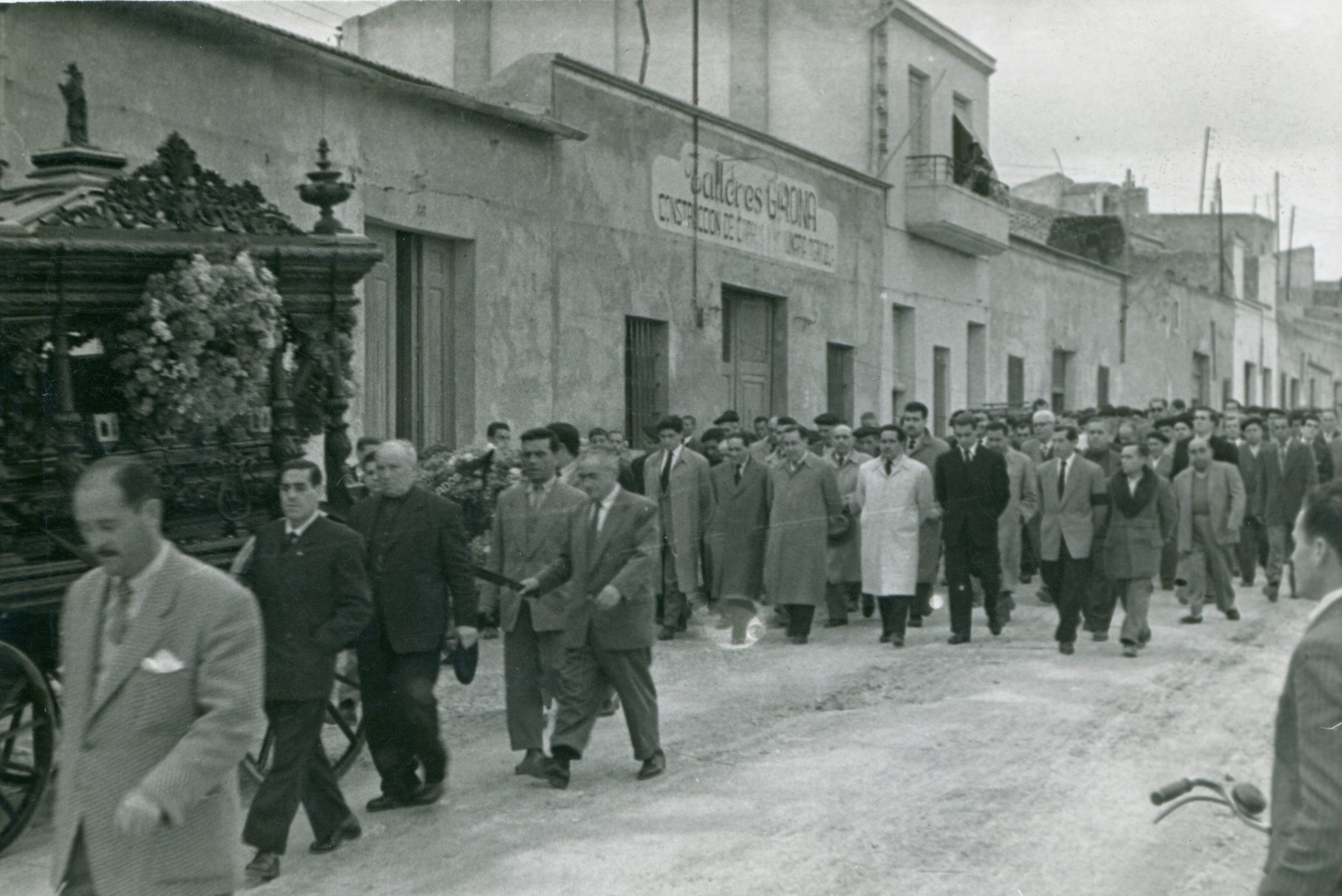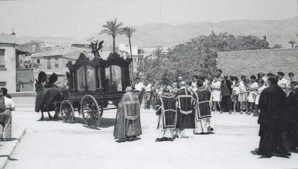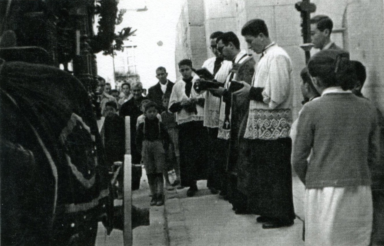 Entierro de D. Francisco Mas (Don Paco), cura párroco de Crevillent, i de su sobrina Remedios Mas. Don Paco y su sobrina murieron, en un fatal accidente, el año 1961.