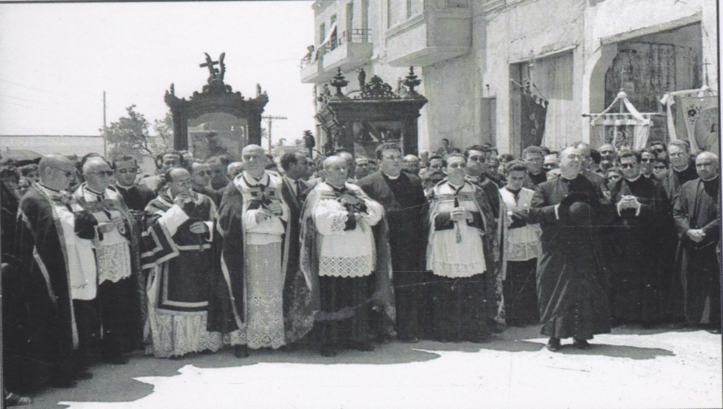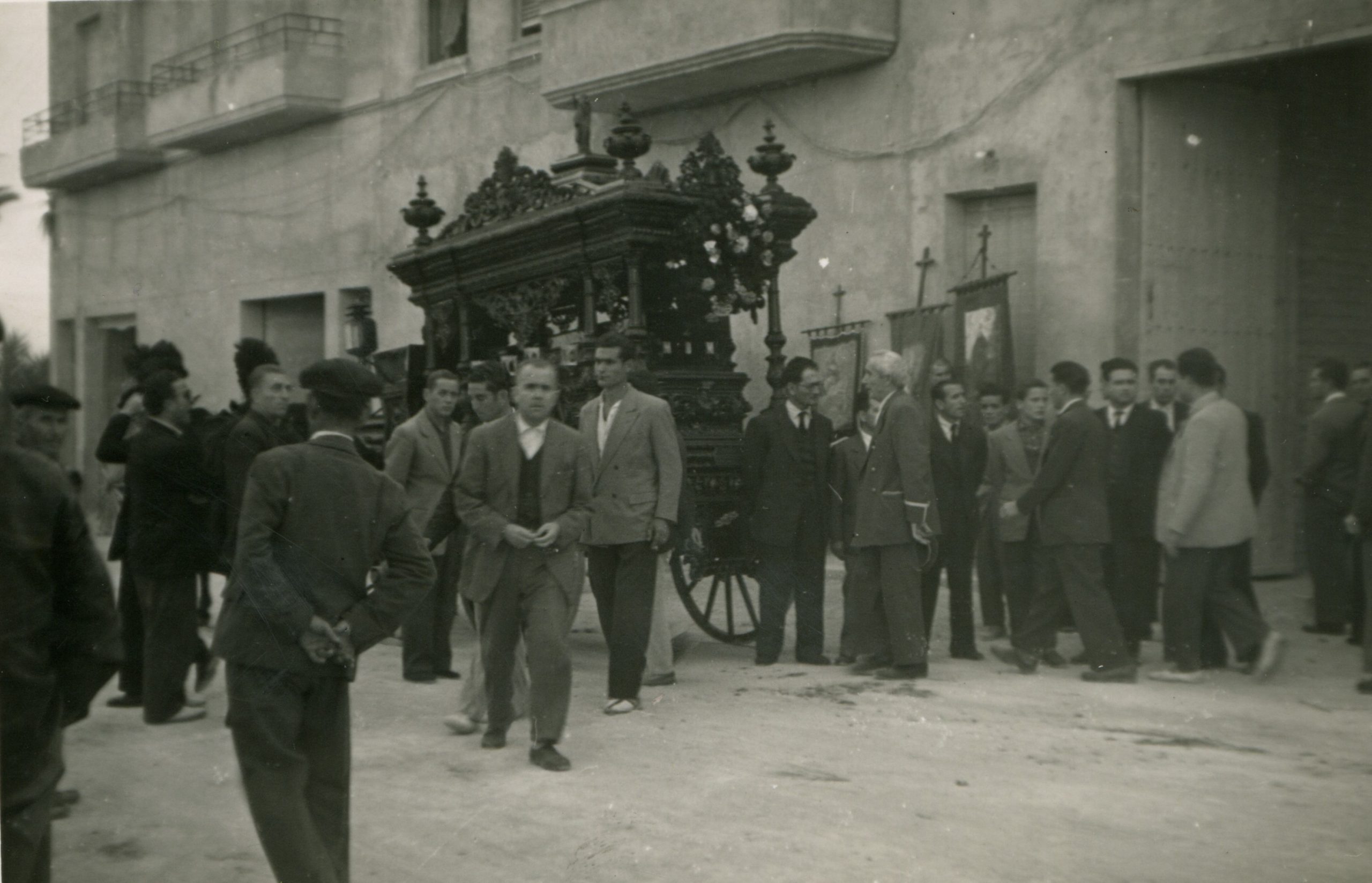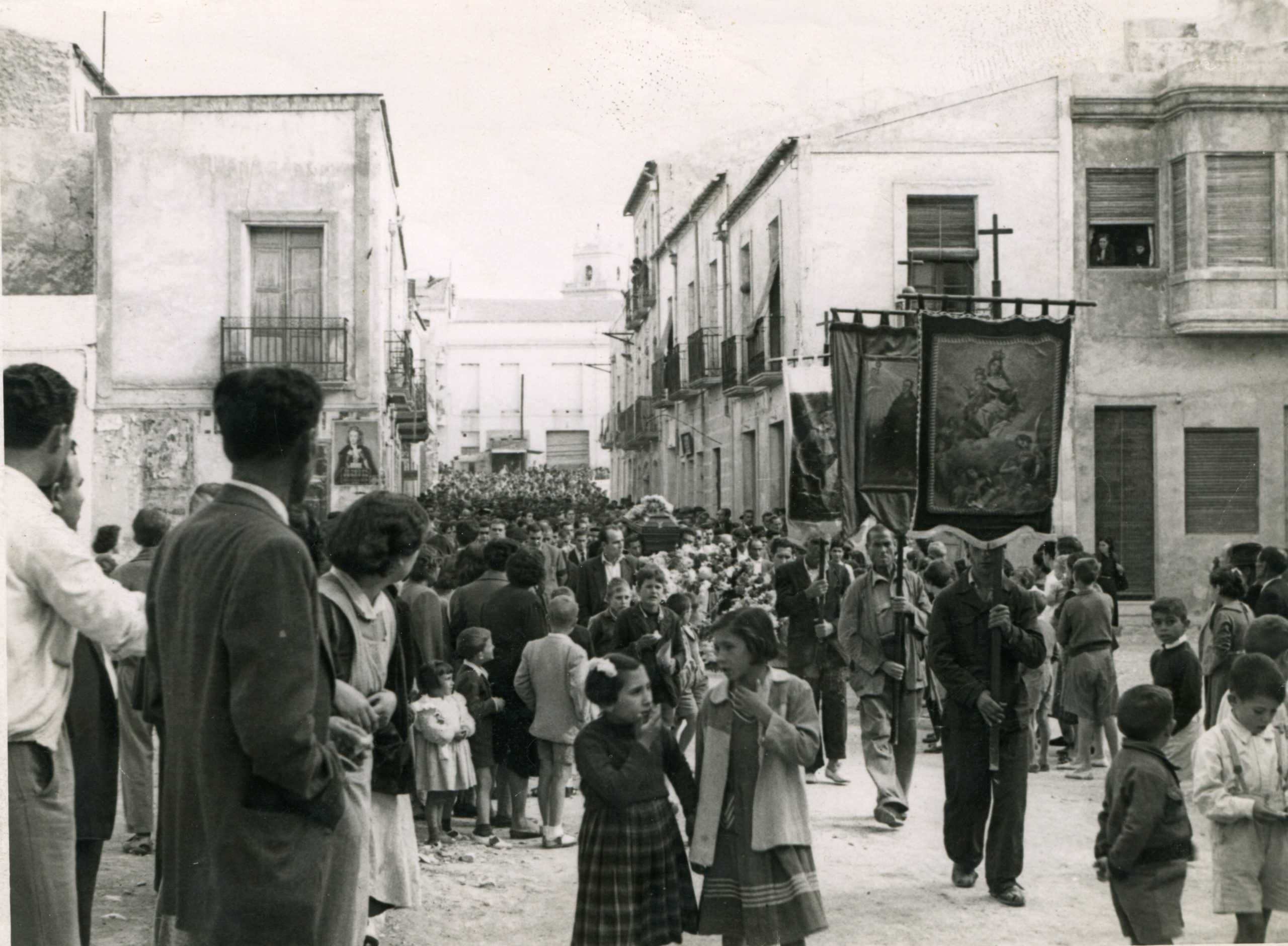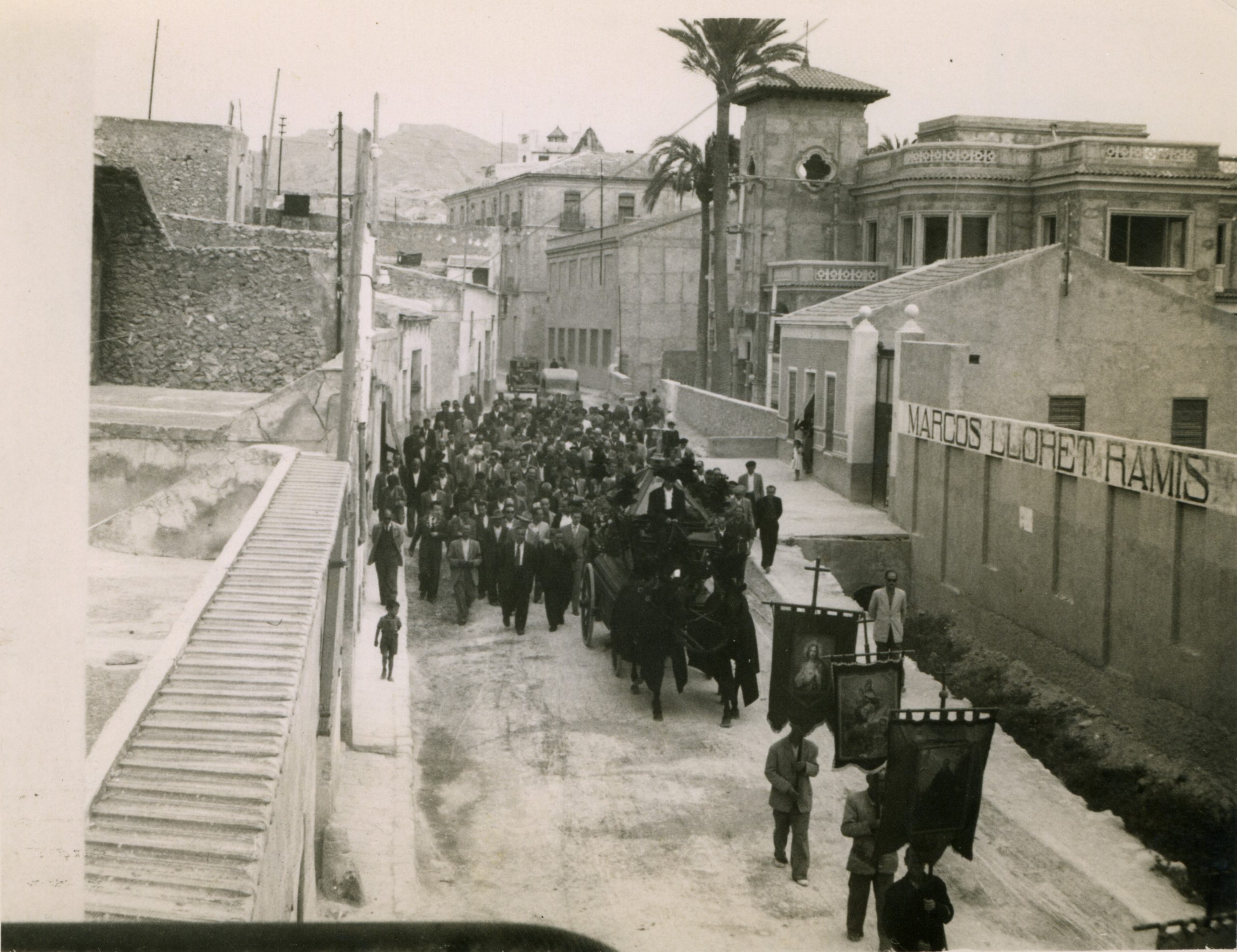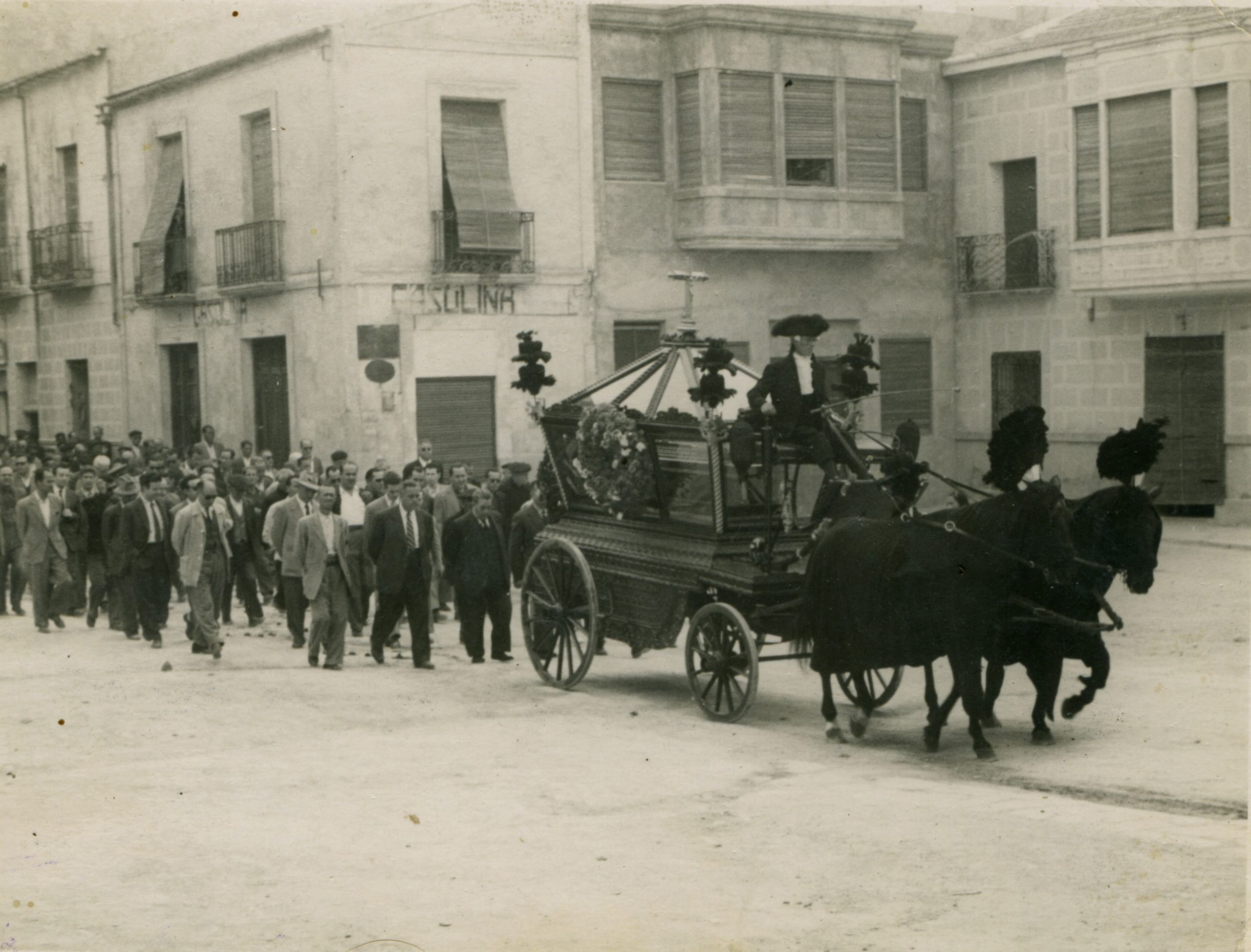Entierro de D. Francisco Mas (Don Paco), cura párroco de Crevillent, i de su sobrina Remedios Mas. Don Paco y su sobrina murieron, en un fatal accidente, el año 1961.