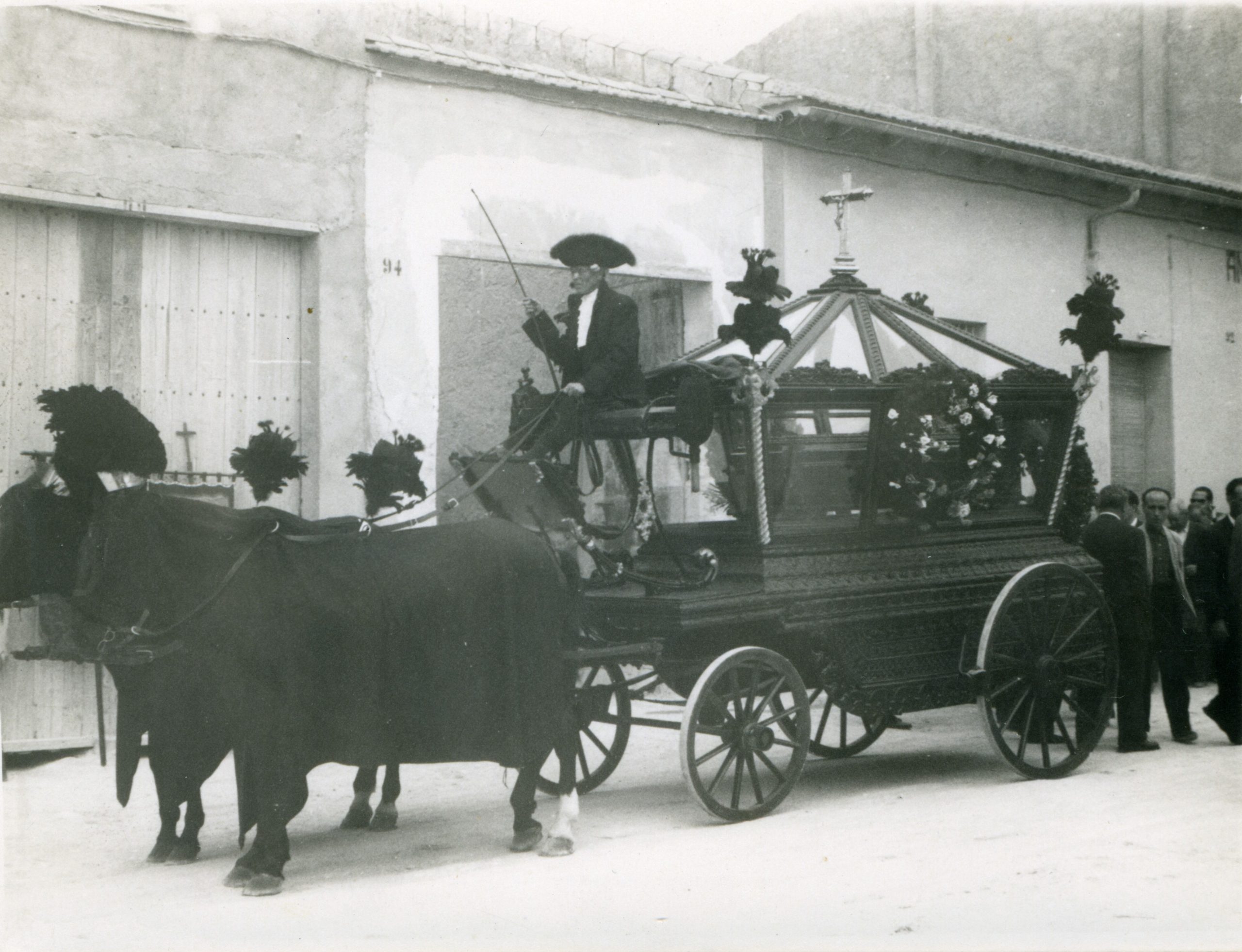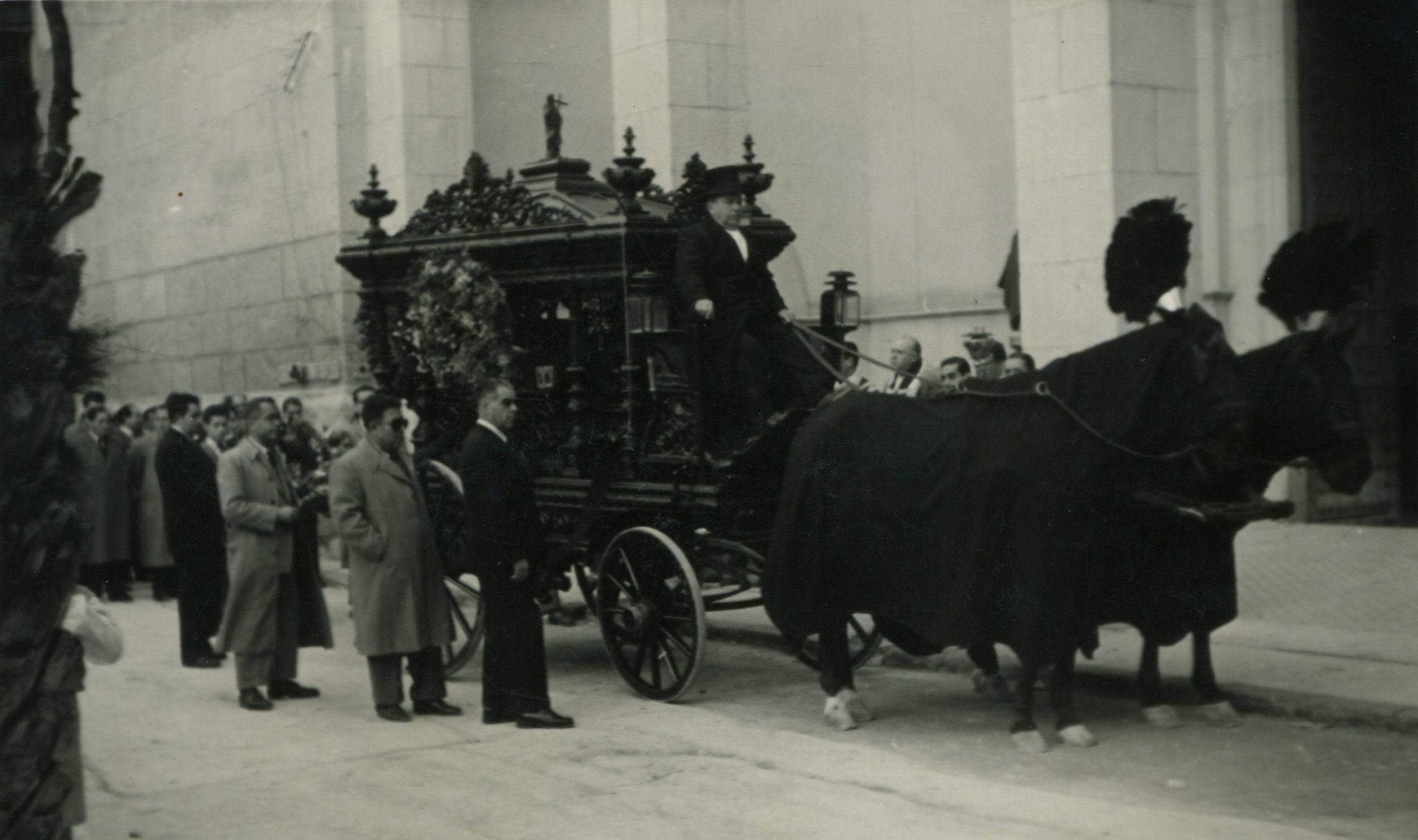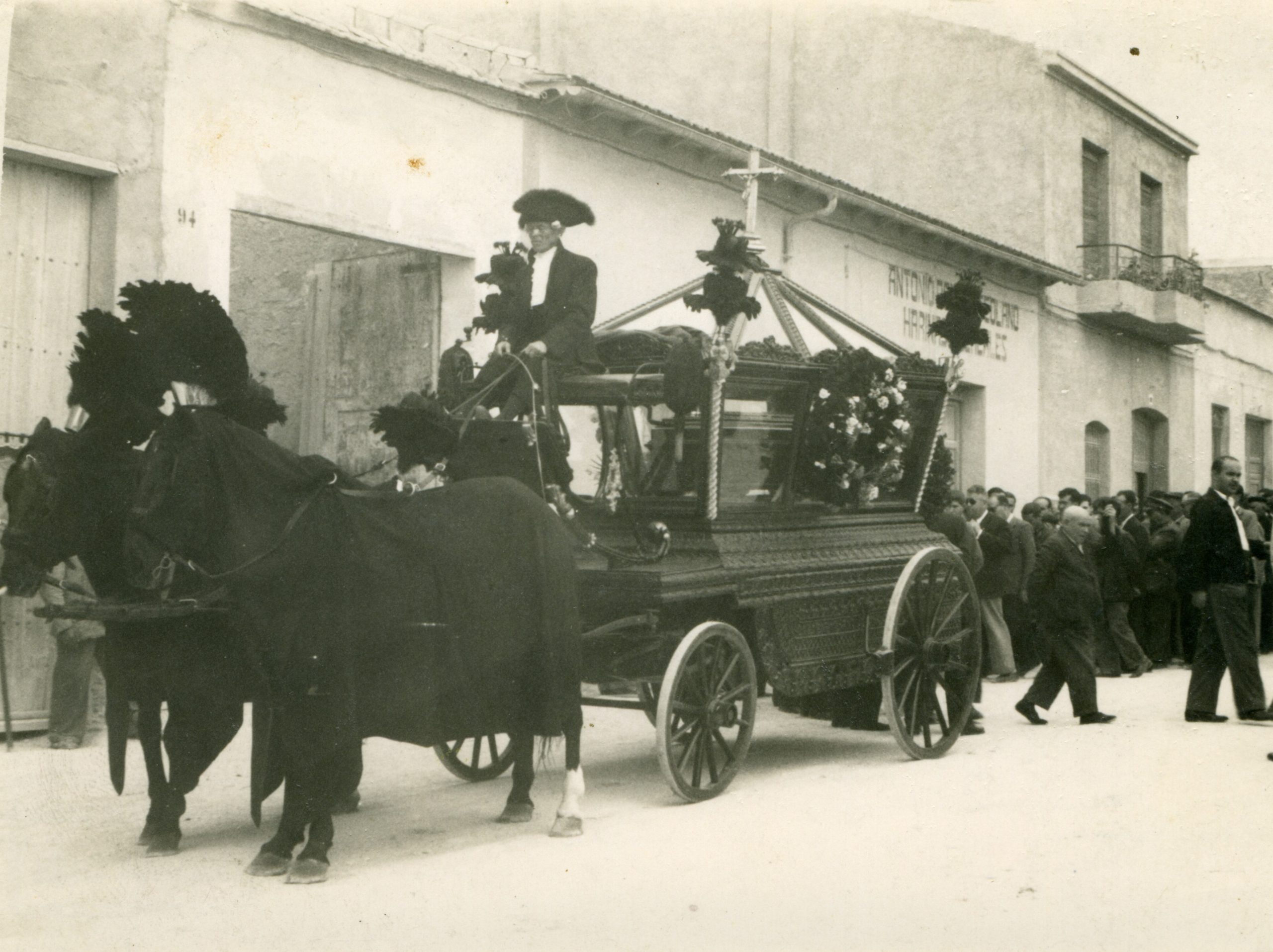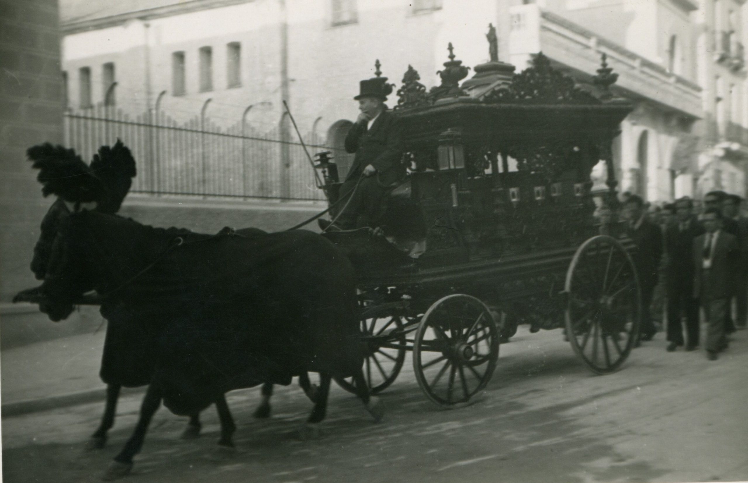 El coche fúnebre era una carroza negra que imponía respeto por su significado y por su suntuosidad. Los caballos iban cubiertos de negro y llevaban en la cabeza un penacho del mismo color.