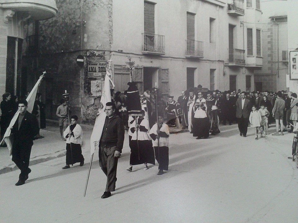 Cuando una persona estaba a punto de morir –in articulo mortis-, el sacerdote y un par de monaguillos iban a su casa para darle el sacramento de la extremaunción. Al “pas del combregar”(*), así se denominaba la comitiva que llevaba el viático, y al son de la llamada “campaneta de combregar», tocada por los escolanos, la gente se arrodillaba.