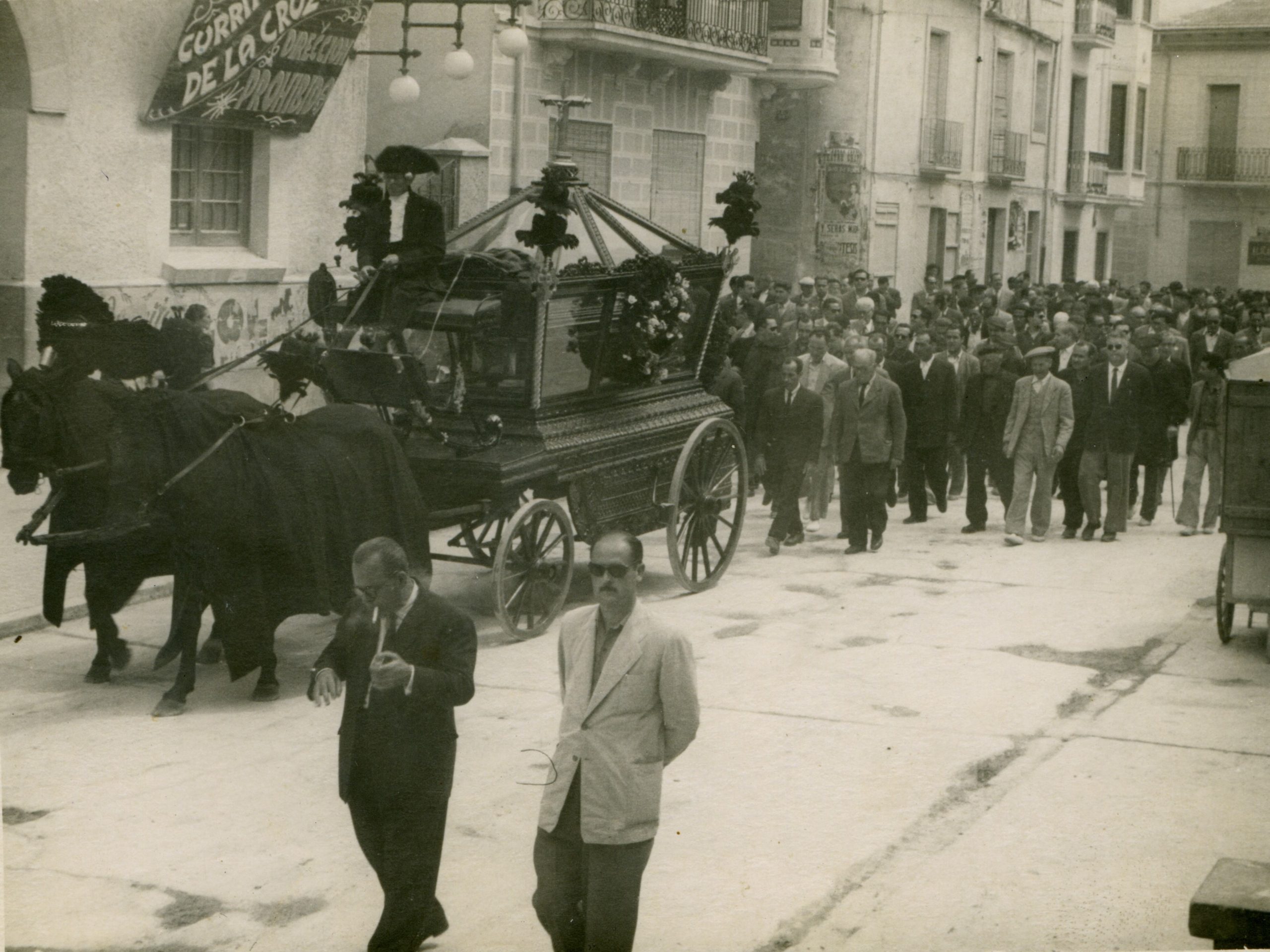 Pero el multitudinario acompañamiento se prohibió en una normativa municipal del año 1964, ya que no era viable, por el aumento de tráfico, esa concentración de gente dentro del núcleo urbano. A partir de entonces, el duelo se despide a las puertas de la iglesia. Al cementerio iba la familia más próxima y quien tuviera la voluntad de hacerlo.