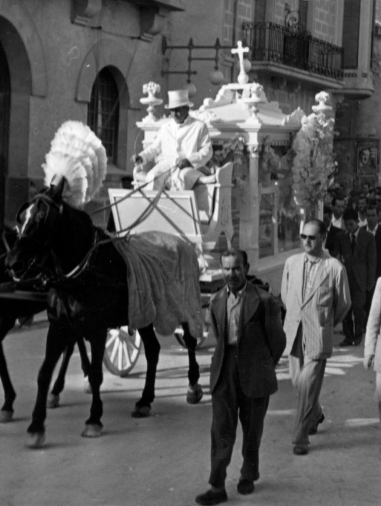 Si el entierro era de un “mortixol” era todo de color blanco: el féretro, las flores, la carroza, la vestimenta del conductor y el adorno de los caballos.