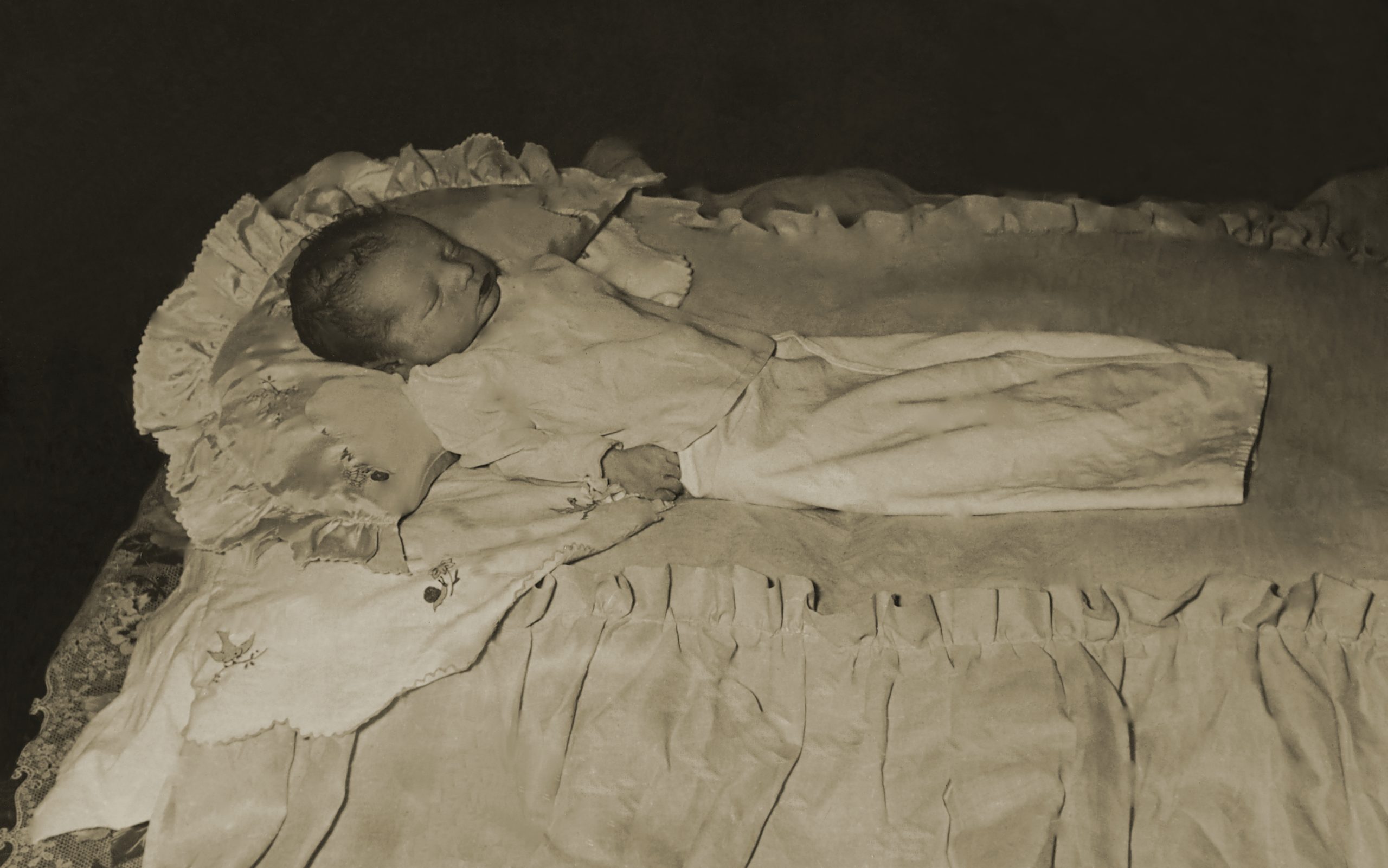 Uno de los retratos más frecuentes de la infancia, a causa de la alta mortalidad infantil, era el realizado post mortem, recién muerto el niño/a.